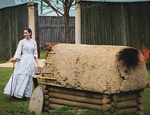 Museum staff fire up the Pioneer Clay Oven several times a Summer and treat visitors to fresh baked treats. It takes approximately 6 hours to heat the oven.